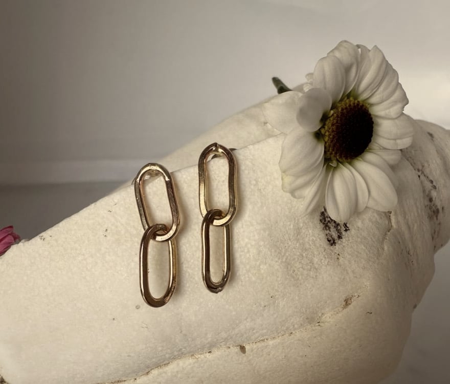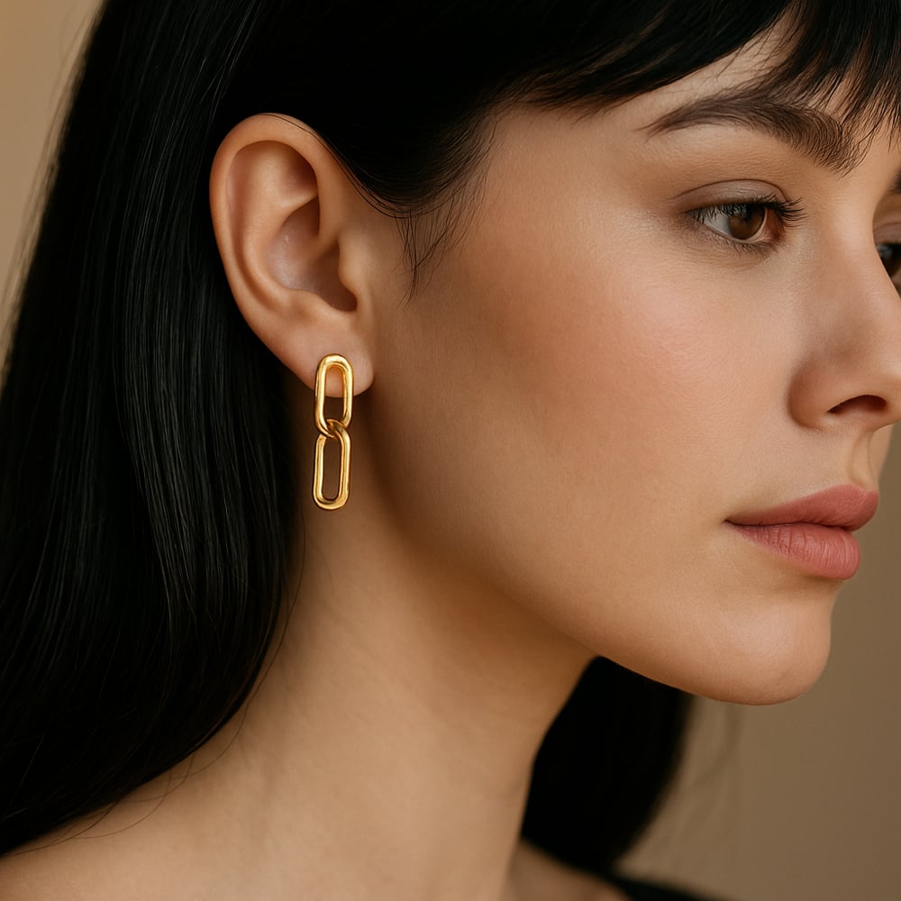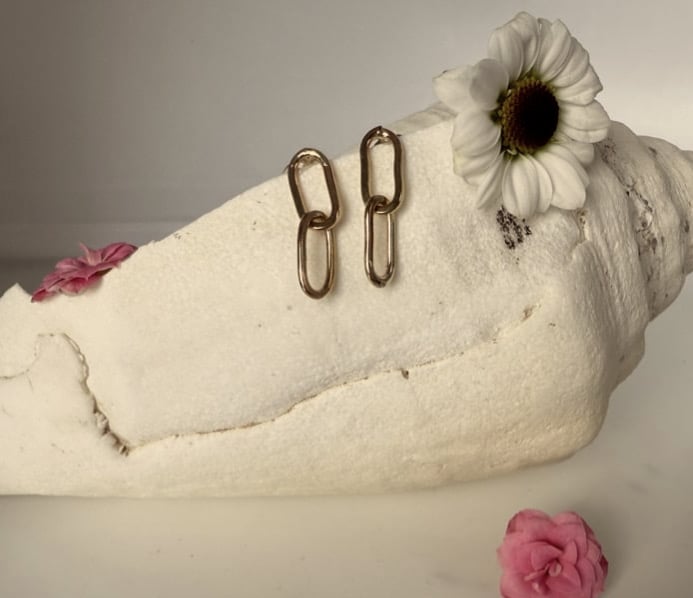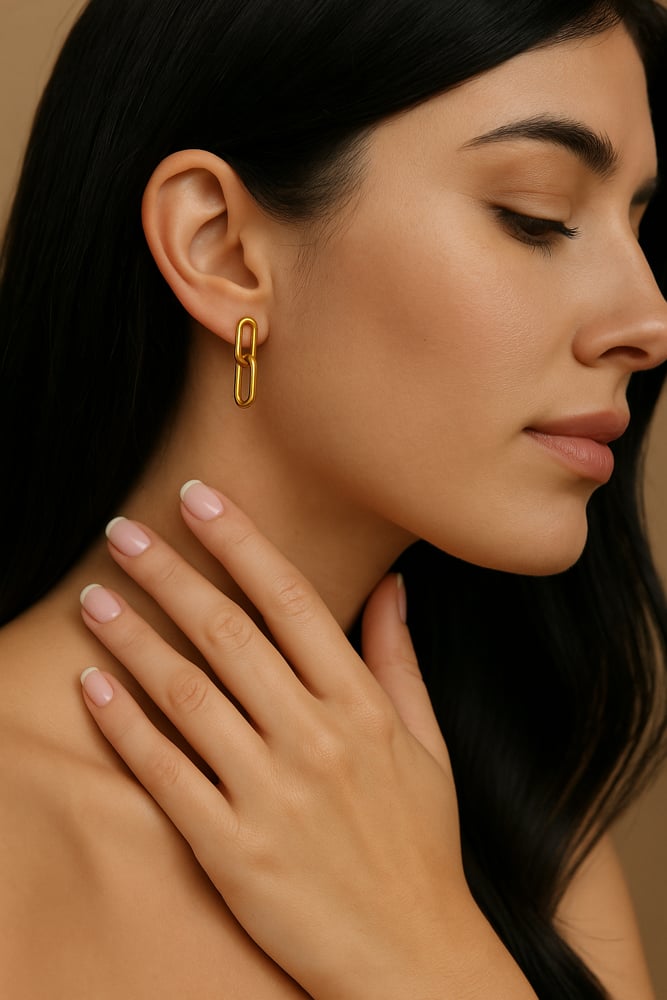 The Brooklyn Paper Clip Chain Earrings are a study in still elegance—crafted entirely by hand from solid 14k gold. With a 1-inch dangle and soft movement, these sculptural forms echo presence without noise. Light-catching and graceful, they are the kind of piece you forget you’re wearing—until someone stops you to ask where they’re from.