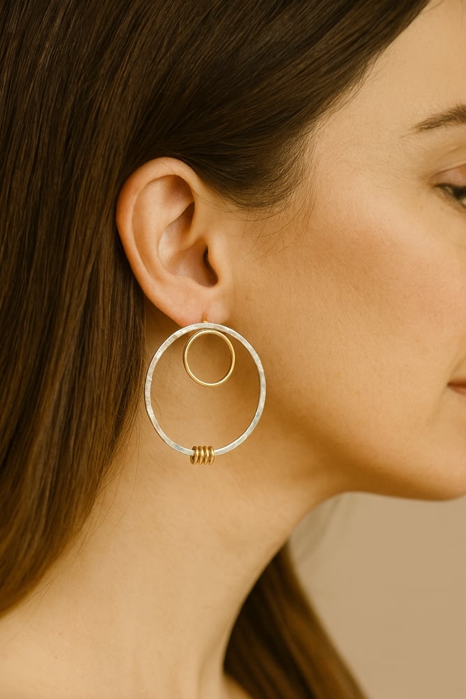 Handcrafted with graceful precision, The SoHo Earrings embody the artistic soul and effortless sophistication of New York City’s SoHo district. Textured gold circles intertwine in fluid balance — a reflection of light, motion, and creative freedom.